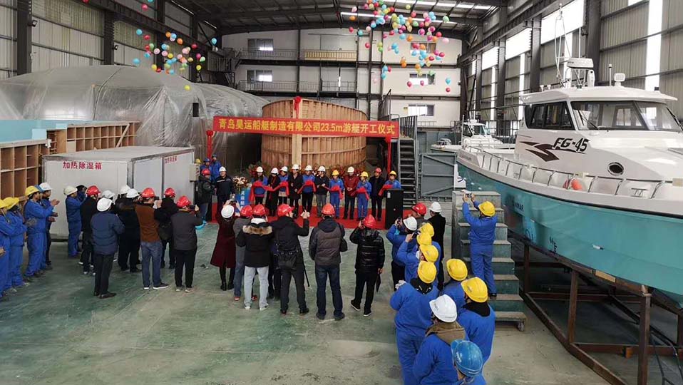 2019年1月8號昊運船艇24米游釣艇開工儀式,昊運船艇邀請青島船級社領導、用戶及設備供應商共同剪彩。